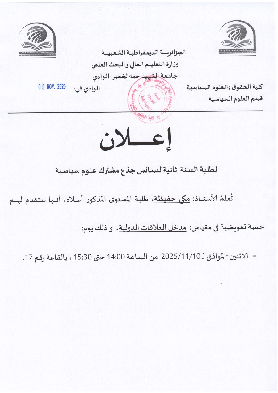 ب/خ: حصة اضافية سنة أولى ليسانس جذع مشترك حقوق الفوج "08"