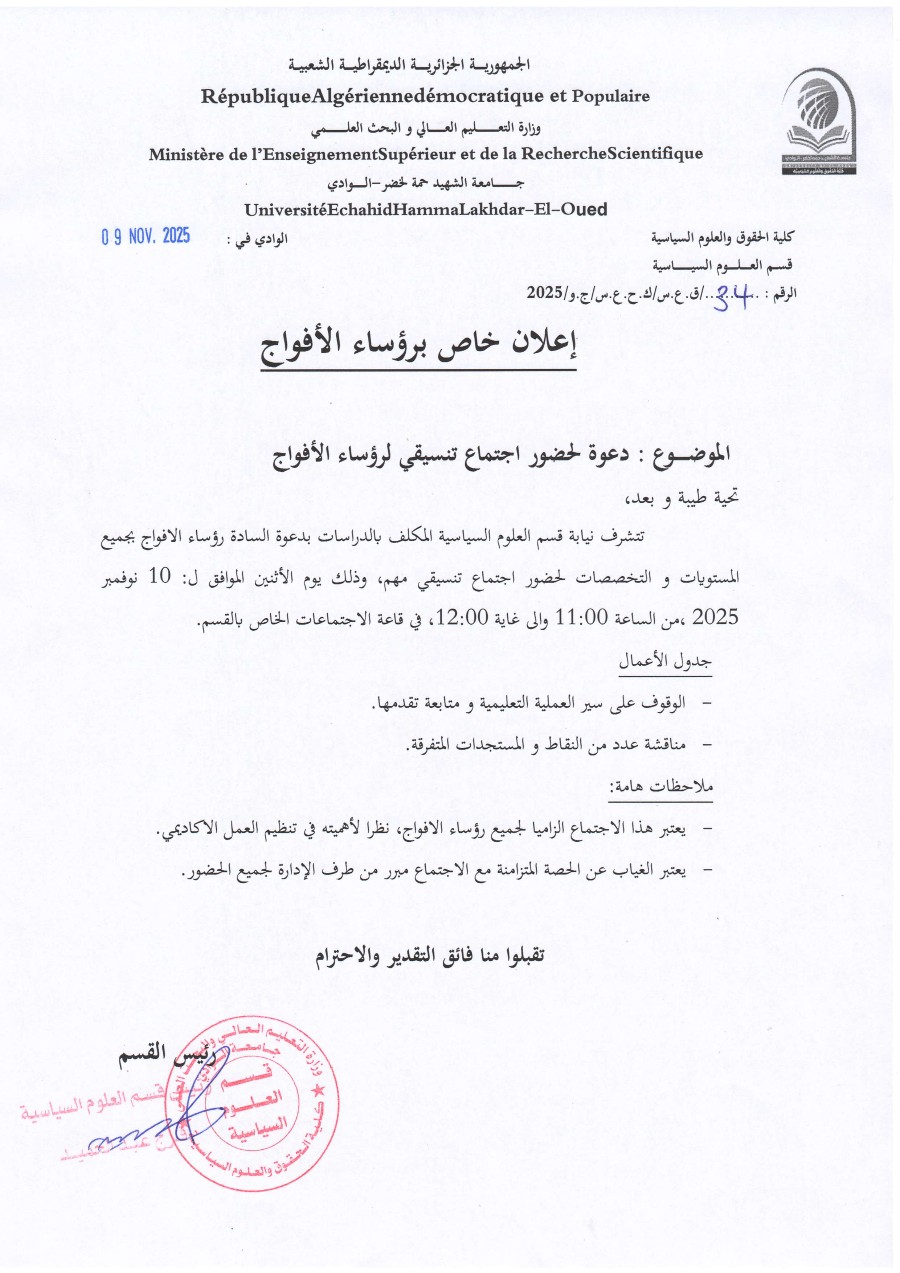 ب/خ: رؤساء الأفواج على مستوى قسم العلوم السياسية