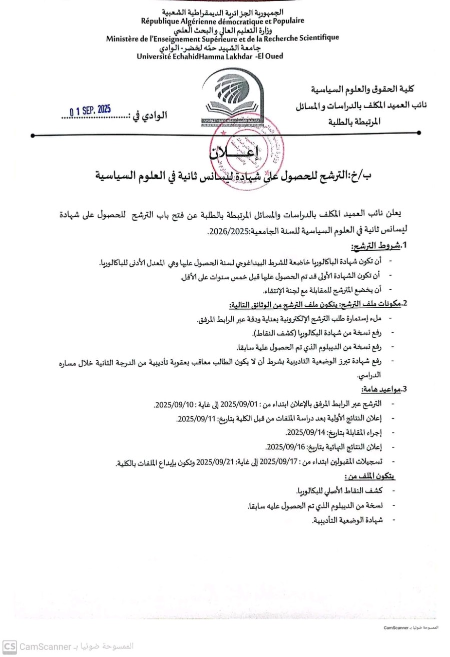 ب/ خ: الترشح للحصول على شهادة ليسانس ثانية في تخصص العلوم السياسية