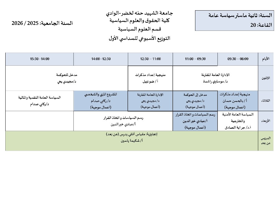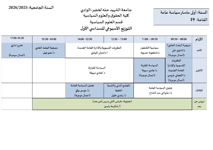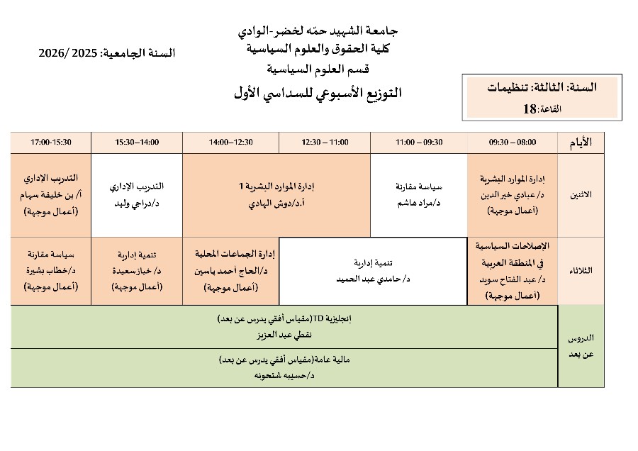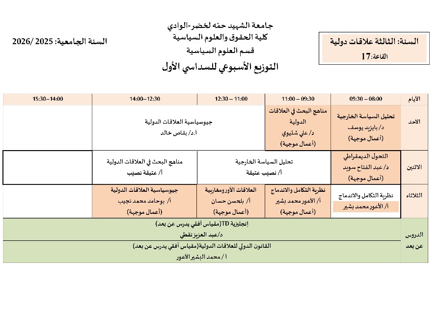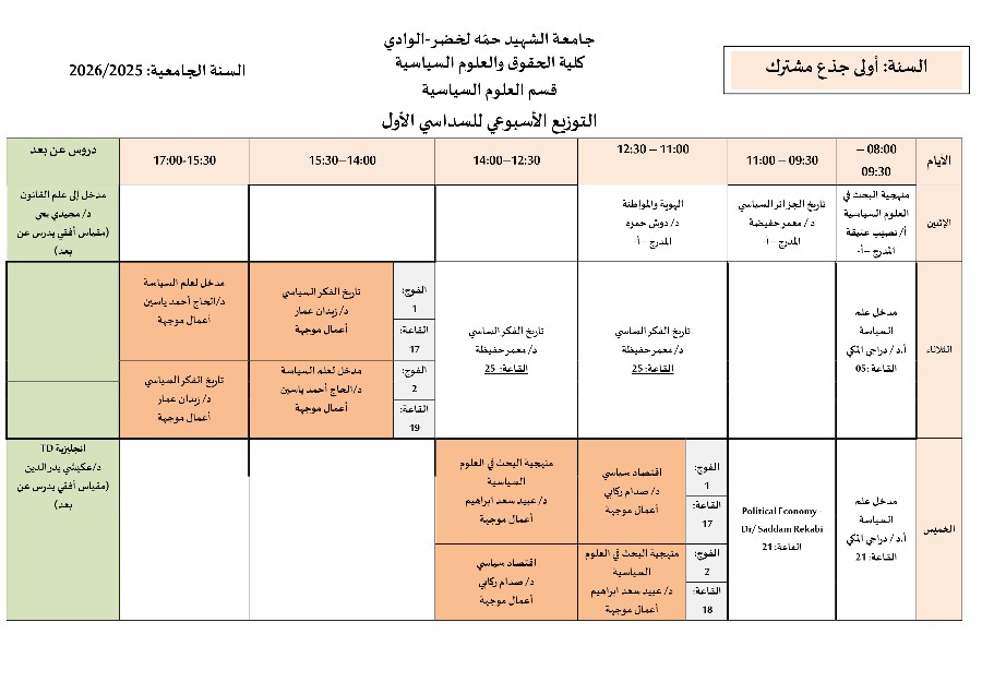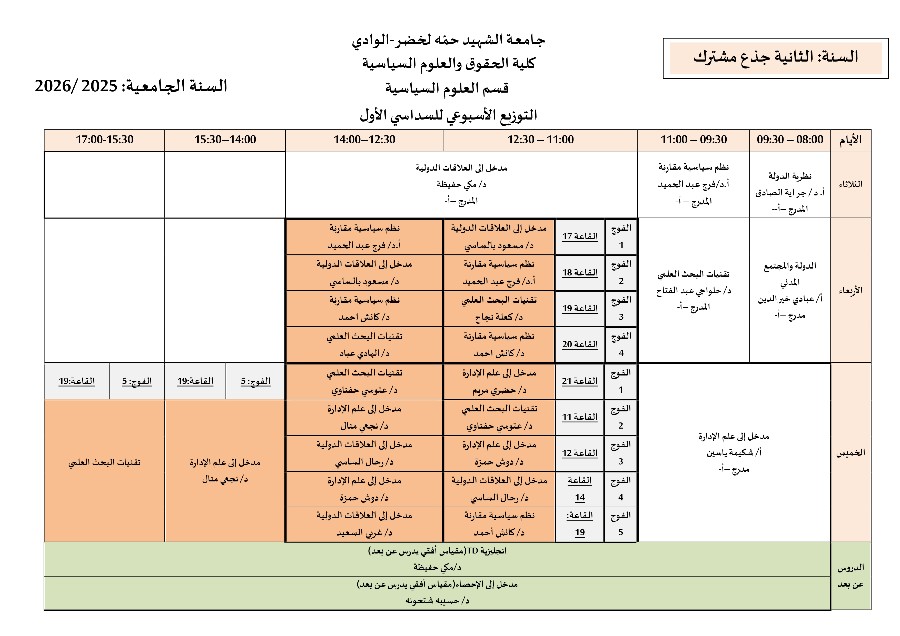 جدول الدراسة و الأفواج للسداسي الأول 2024/2025