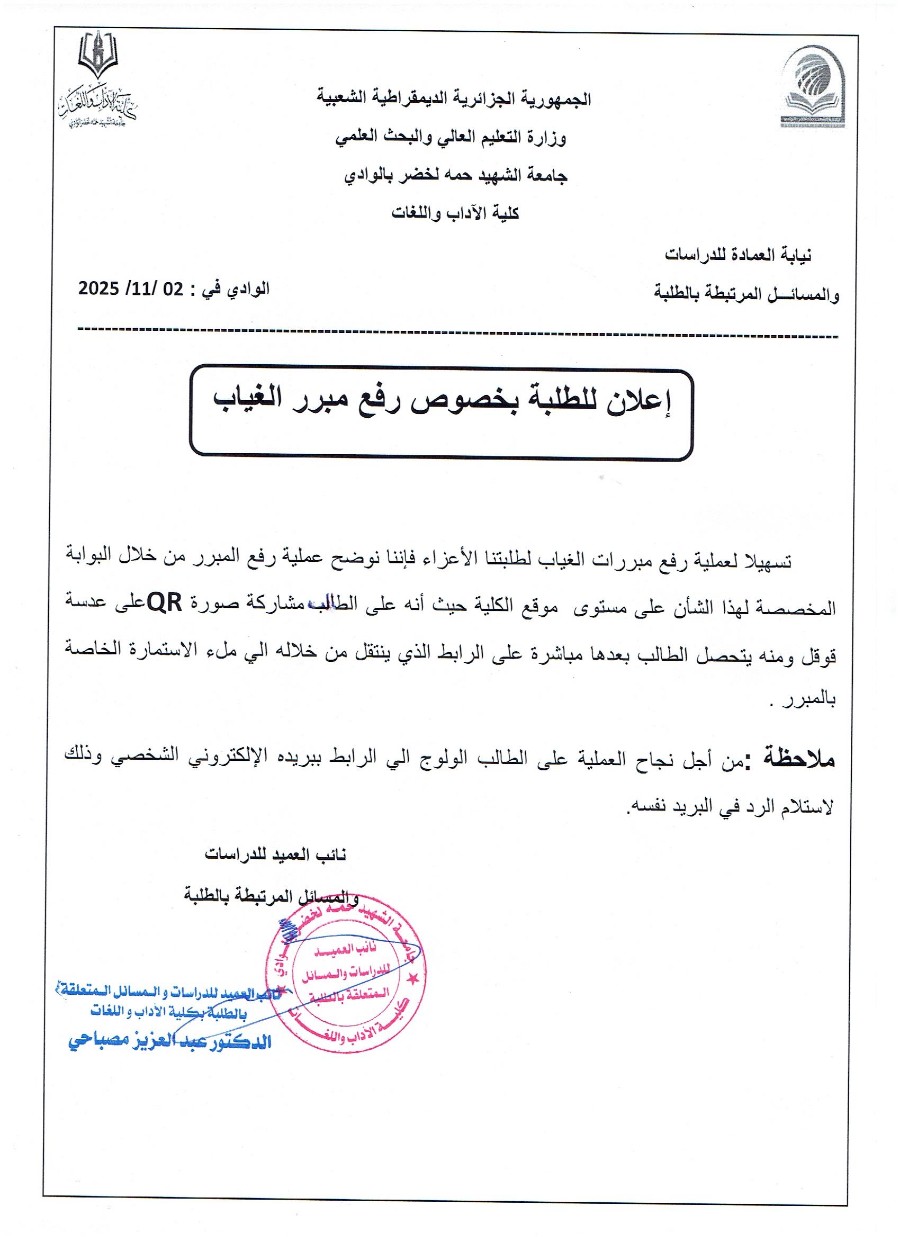 إعلان هام للطلبة بخصوص رفـــع مبررات الغياب