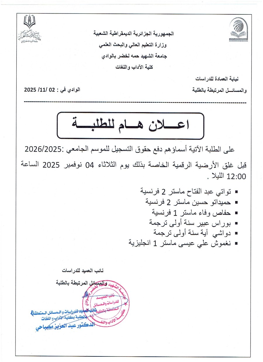 إعلان هام للطلبة بخصوص رفـــع مبررات الغياب