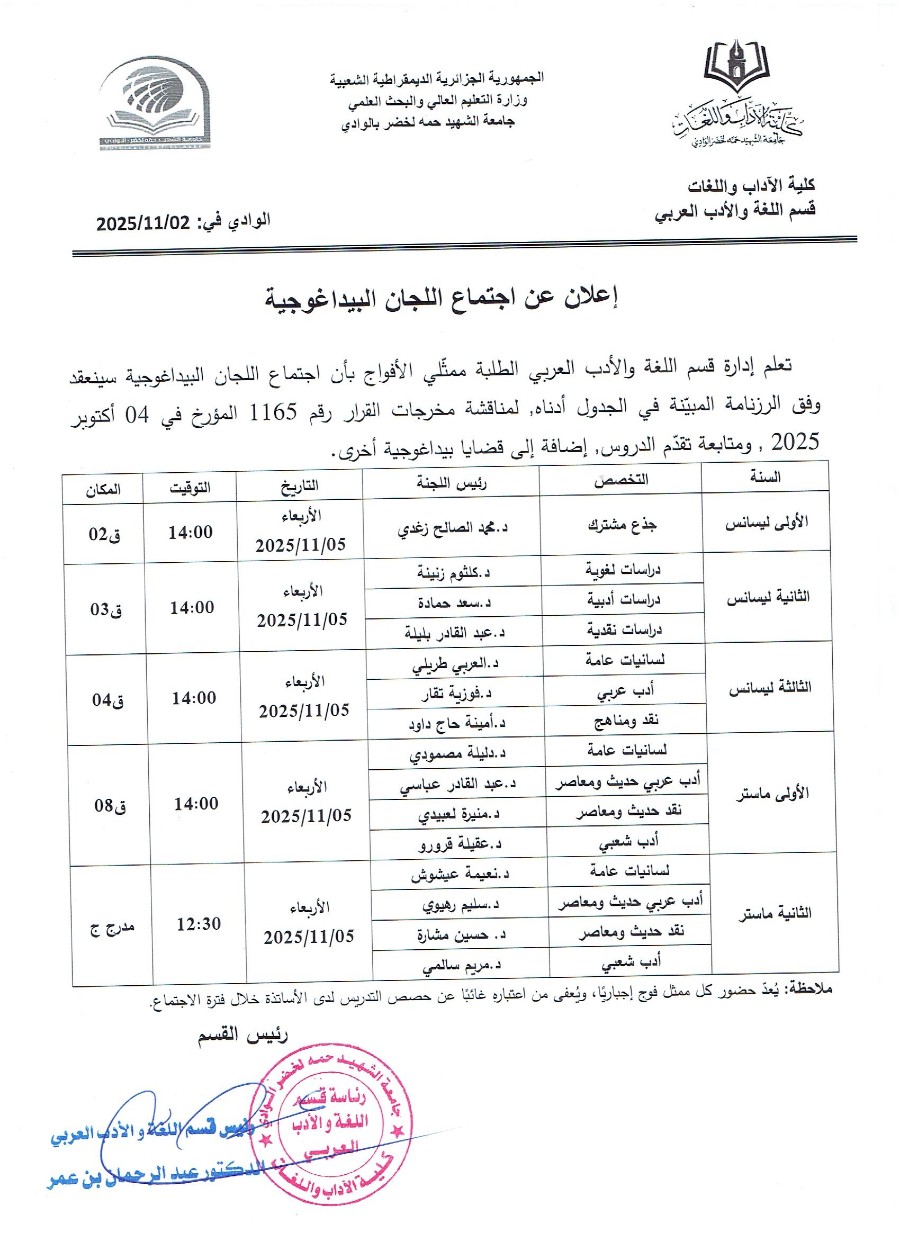 إعلان عن اجتماع اللجان البيداغوجية