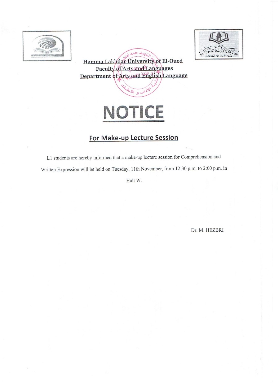 NOTICEfor Make-up lectuer session