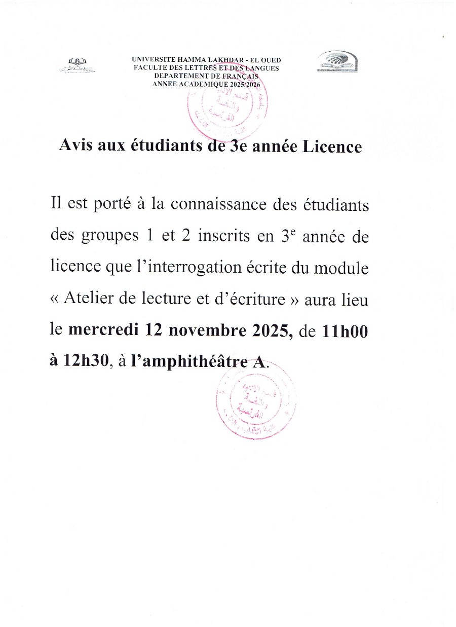 Avis aux étudiants de 3e année licence