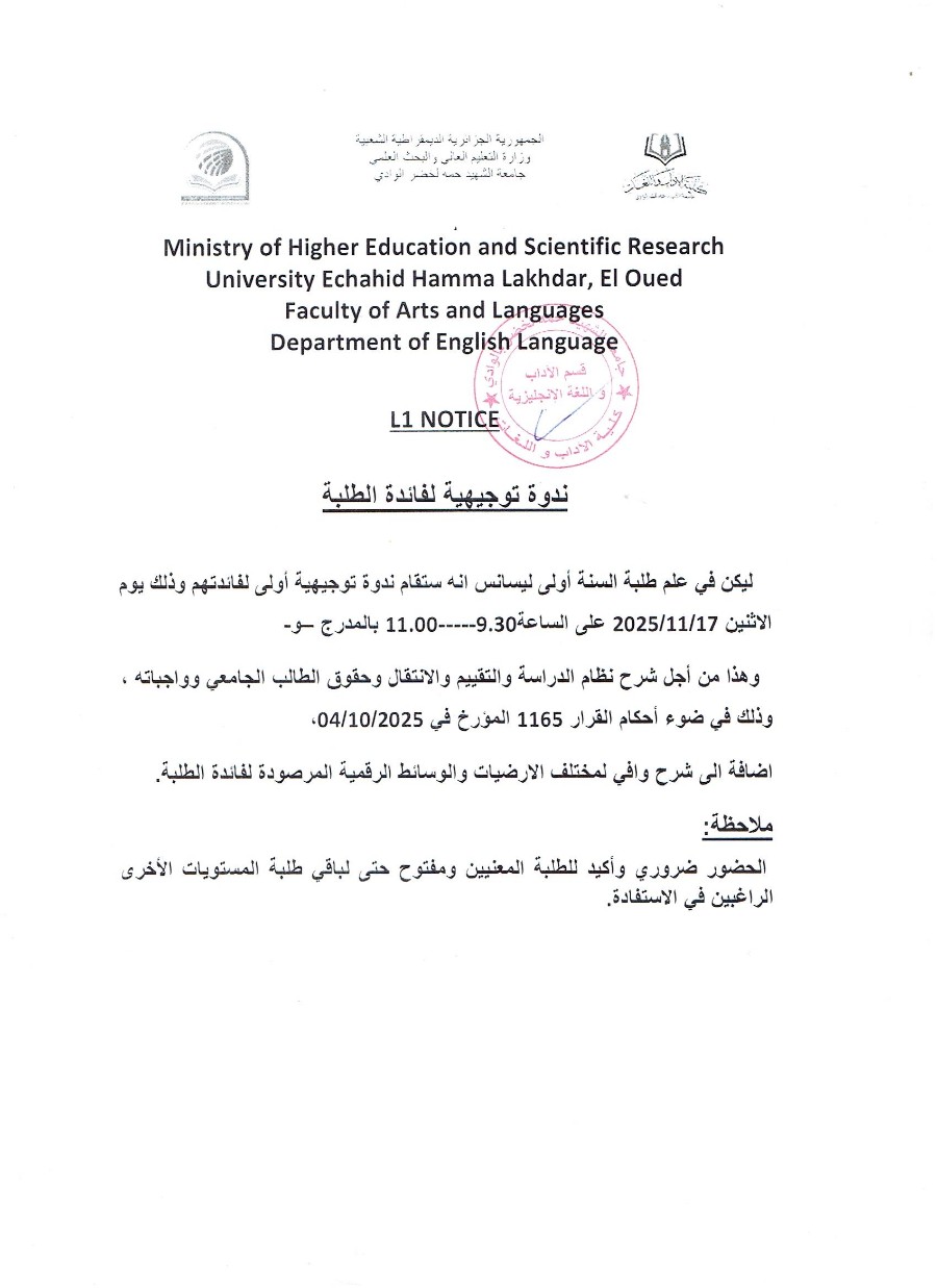 L1 NOTICE ندوة توجيهية لفائدة الطلبة