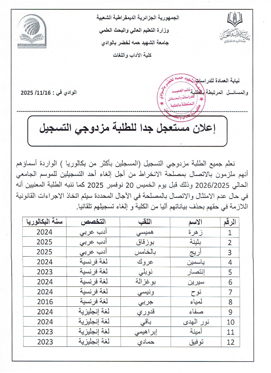 إعلان مستجل جدا للطلبة مزدوجي التسجيل