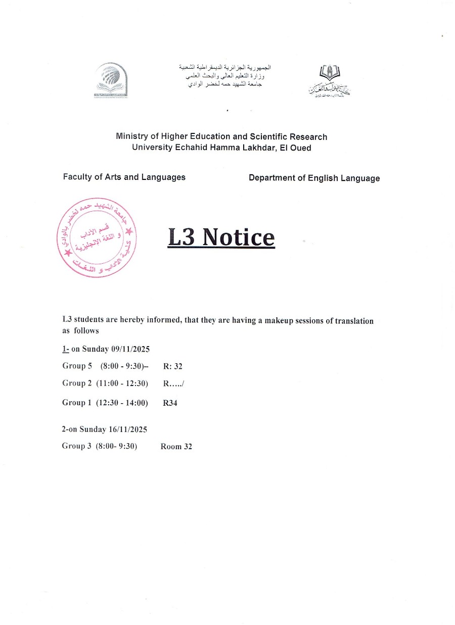 تعديل في توقيت الندوة التوجيهية لفائدة طلبة سنة أولى ليسانس