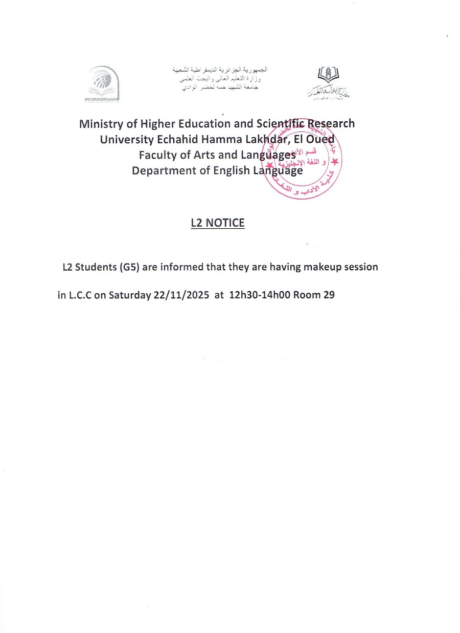 تعديل في توقيت الندوة التوجيهية لفائدة طلبة سنة أولى ليسانس