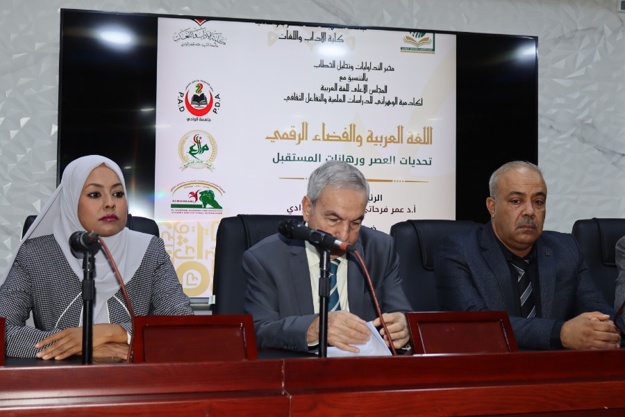 في إطار جهوده العلمية الهادفة إلى ترقية البحث في مجالات اللغة والتواصل، نظّم مخبر التداوليات وتحليل الخطاب بكلية الآداب واللغات، وبالتنسيق مع قسم اللغة والأدب العربي والمجلس الأعلى للّغة العربية وأكاديمية الوهراني للدراسات العلمية والتفاعل الثقافي، ندوة وطنية بعنوان: “اللغة العربية والفضاء الرقمي: تحديات العصر ورهانات المستقبل” وذلك اليوم الثلاثاء 18 نوفمبر 2025 بقاعة المناقشات بكلية العلوم الإسلامية.افتتحت الندوة بكلمة للسيد نائب المدير ومدير المدرسة العليا للأساتذة البروفيسور بشير مناعي، تلتها كلمة السيدة عميد الكلية البروفيسورة دلال وشن، التي أكدت على أهمية مواكبة اللغة العربية لرهانات العصر الرقمي وضرورة الاستثمار في التكنولوجيا لتعزيز حضورها في المنصات الرقمية والحقول المعرفية الجديدة، كما تقدمت بالشكر إلى جميع المساهمين في تنظيم هذا الحدث العلمي. إضافة الى كلمة ثانية ألقى الدكتور بن عمر عبد الرحمان رئيس قسم اللغة والأدب العربي، كلمة نوّه فيها بجهود القائمين على الندوة ودورها في ترسيخ البحث في قضايا اللغة العربية المعاصرة.