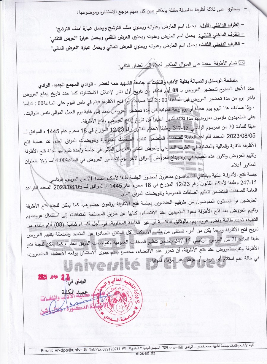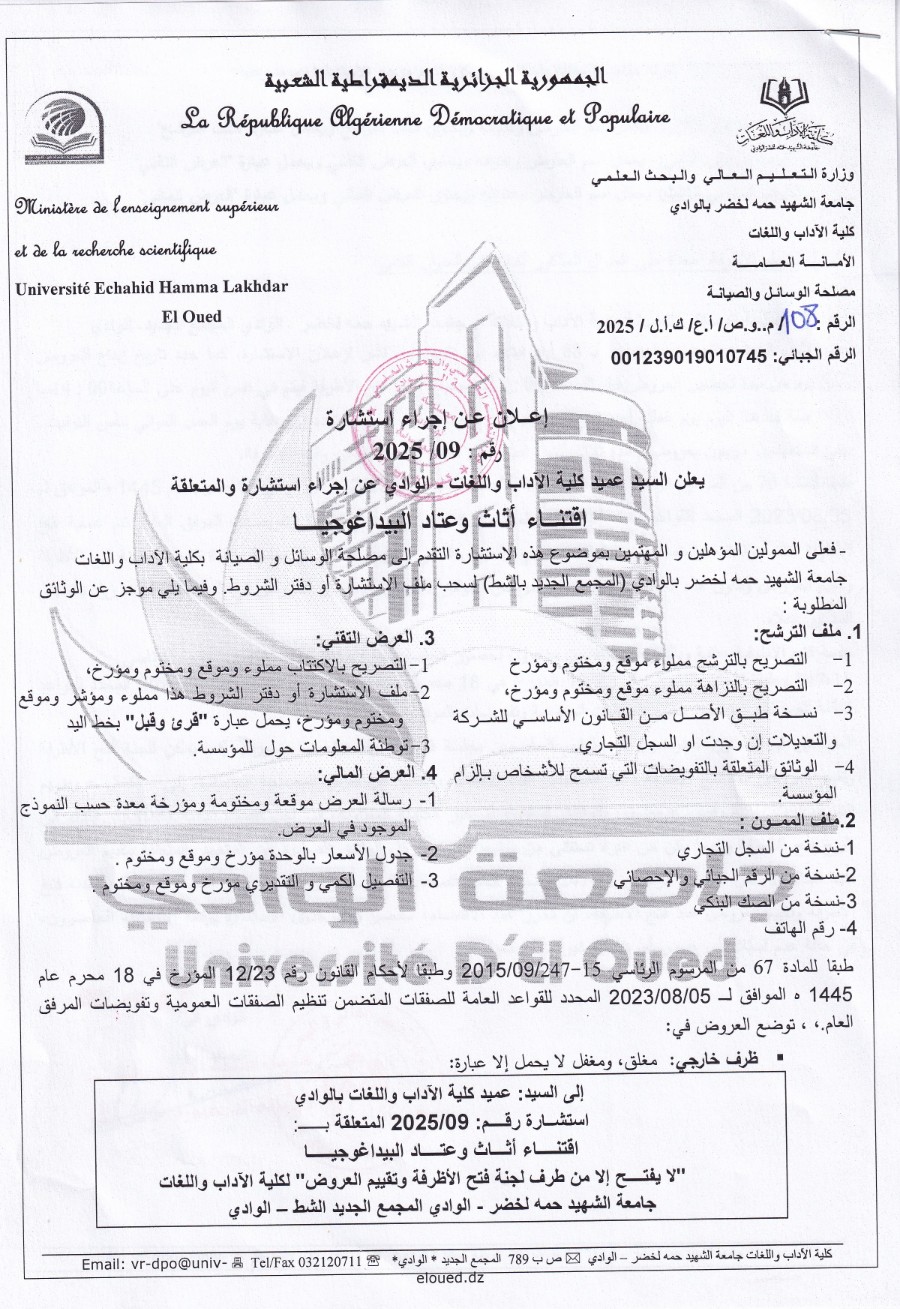 إعلان عن إجراء استشارة اقتناء أثاث وعتاد البيداغوجيا