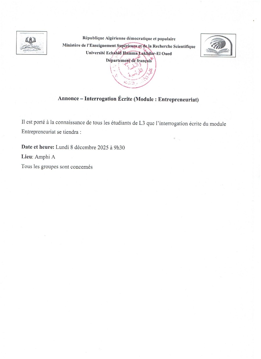 إعلان لطلبة السنة الثالثة ليسانس نقد ومناهج