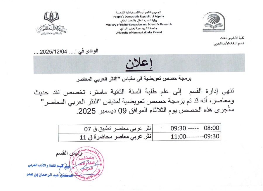 إعلان لطلبة سنة ثانية ماستر نقد حديث ومعاصر