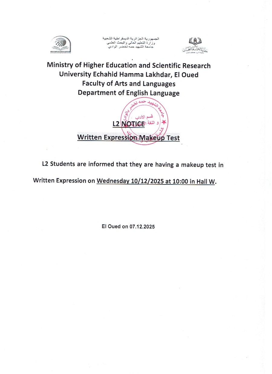 إعلان لطلبة سنة ثانية ماستر نقد حديث ومعاصر