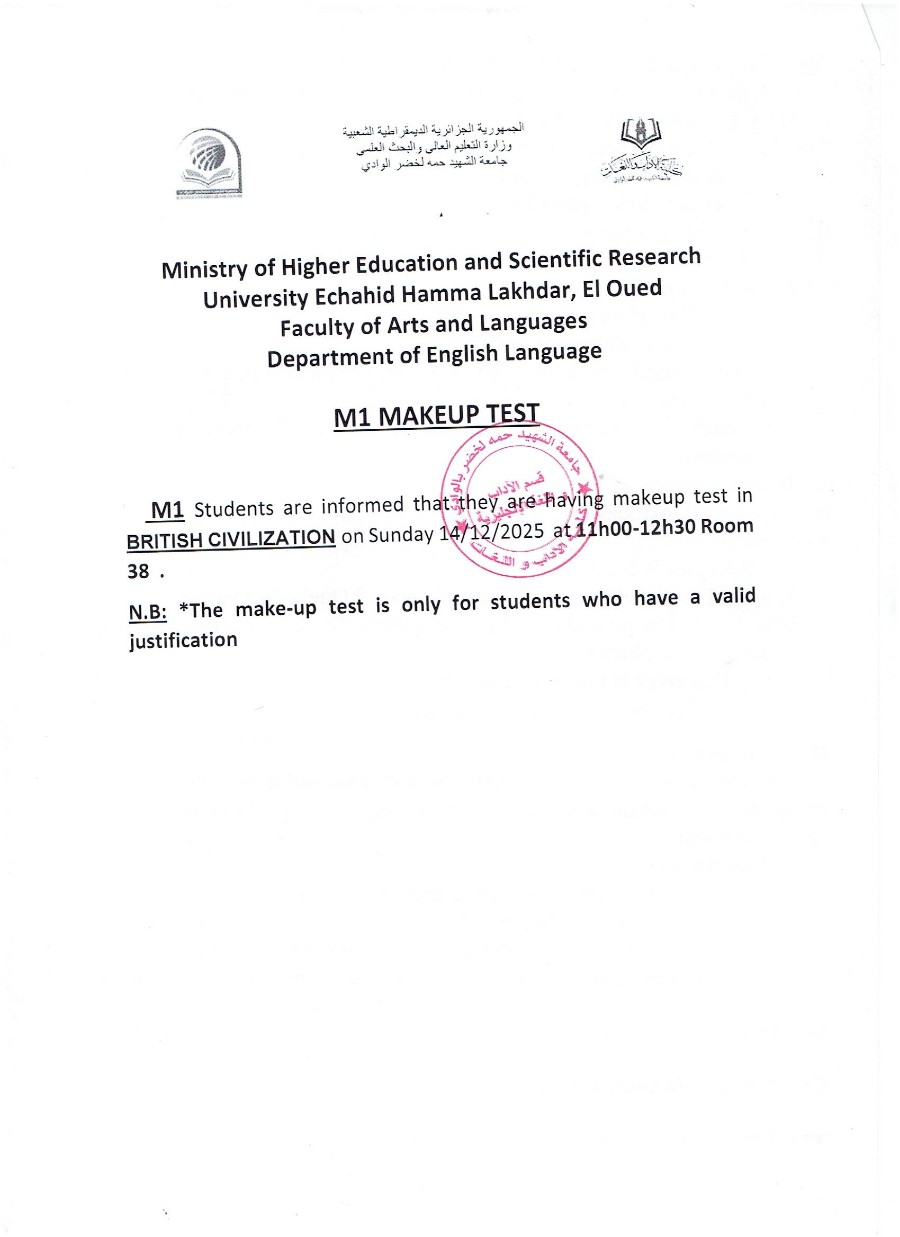 إعلان هـام لطلبة سنة ثانية ماستر لسانيات عامة