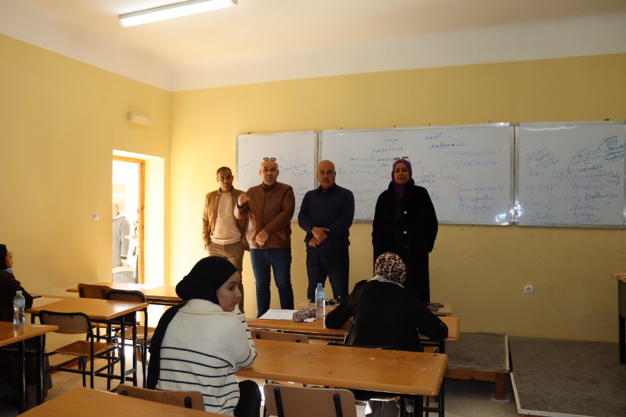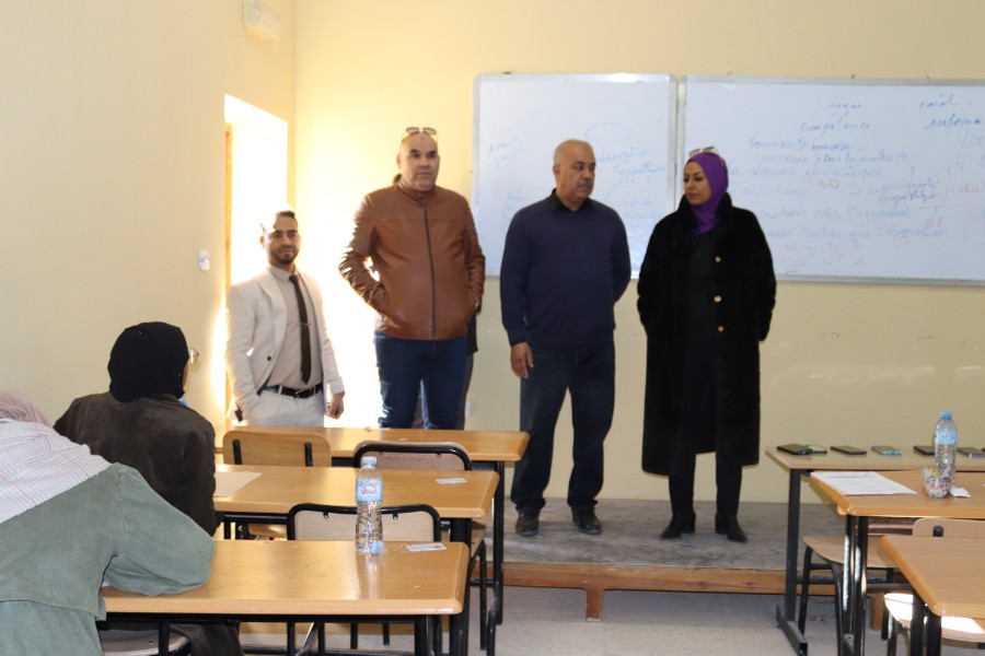 نيابة عن السيد مدير الجامعة أشرف نائب المدير للدراسات البروفيسور بشير مناعي وبمعية السيدة عميد كلية الآداب واللغات، البروفيسورة دلال وشن، صباح اليوم، السبت 17 جانفي 2026، على انطلاق امتحانات الفصل الأول للسنة الجامعية الجارية، وذلك في أجواء تنظيمية محكمة تعكس حرص إدارة الكلية على السير الحسن للعملية البيداغوجية.وقد رافقهما في هذه الزيارة كل من البروفيسور شمسة محمد عميد كلية التكنولوجيا والبروفيسور عبد العزيز مصباحي نائب العميد المكلف بالدراسات بكلية الآداب واللغات، إلى جانب رؤساء الأقسام بالكلية.وخلال هذه الزيارة التفقدية، طاف الوفد بعدد من قاعات ومدرجات الامتحان، حيث اطلع على ظروف إجرائها، ووقف على مدى احترام التعليمات والتنظيمات المعمول بها، مع التأكيد على ضرورة توفير مناخ ملائم يسمح للطلبة بأداء امتحاناتهم في أحسن الظروف.وقد شددت السيدة العميد على أهمية الالتزام بالانضباط والشفافية، مشيدة بالجهود المبذولة من طرف الطاقم الإداري والبيداغوجي في إنجاح هذا الاستحقاق البيداغوجي، ومتمنية في الوقت ذاته التوفيق والنجاح لجميع الطلبة.ويأتي هذا الحدث في إطار المتابعة المستمرة لإدارتي الجامعة والكلية لمختلف المحطات البيداغوجية، بما يضمن جودة التكوين وحسن سير الامتحانات عبر مختلف الأقسام والتخصصات.