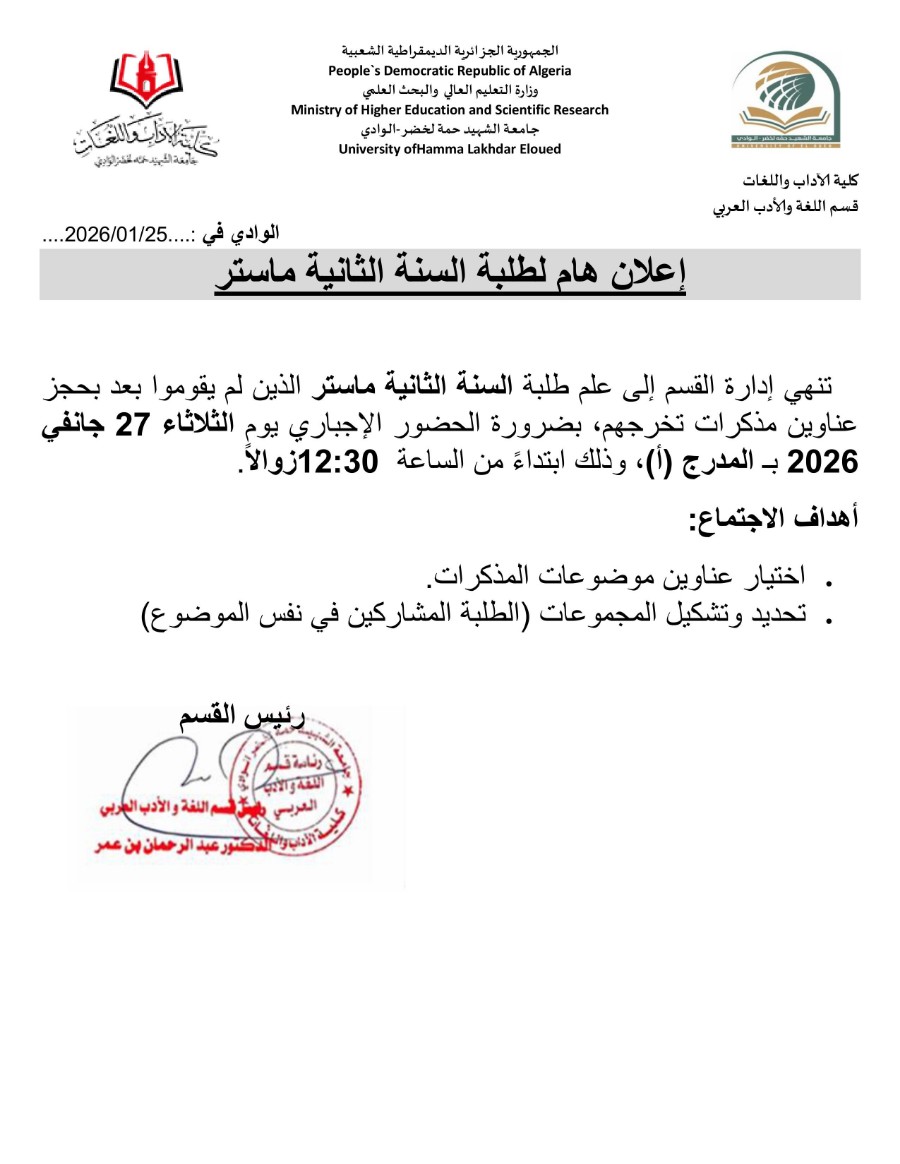 إعـلان هــام لطلبة سنة ثانية ماستر