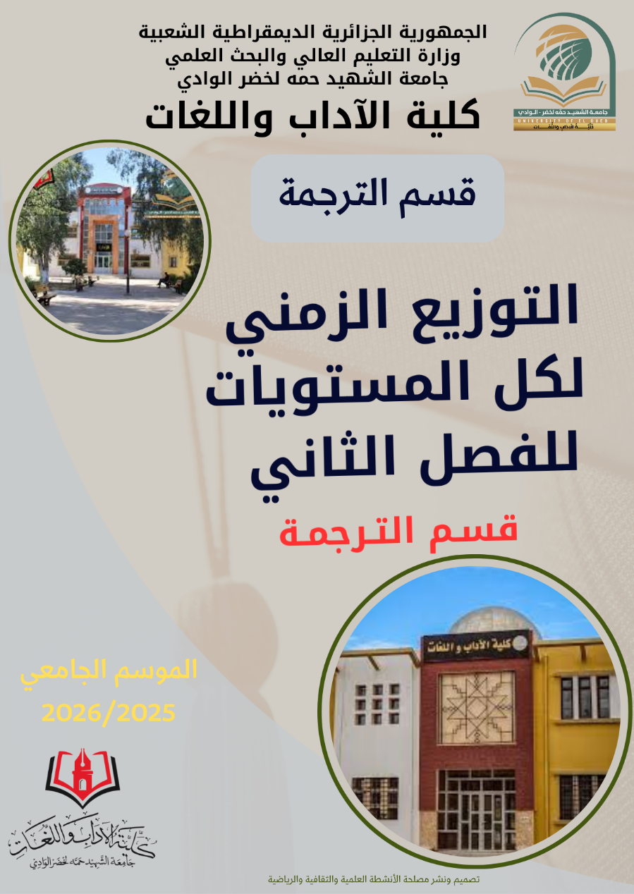 التوزيع الزمني لكل المستويات للفصل الثاني