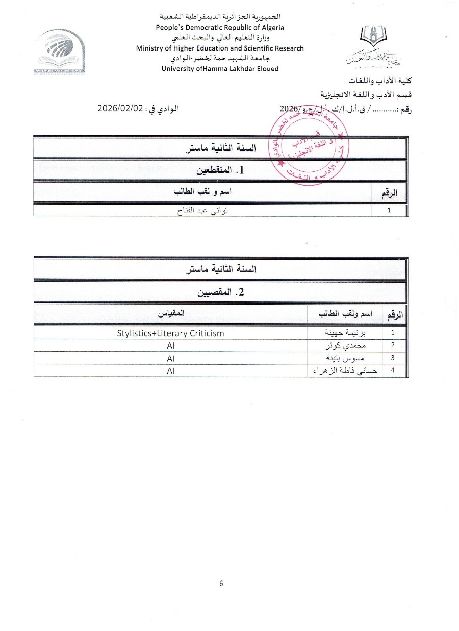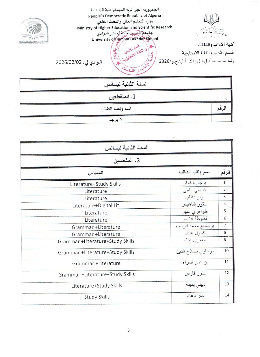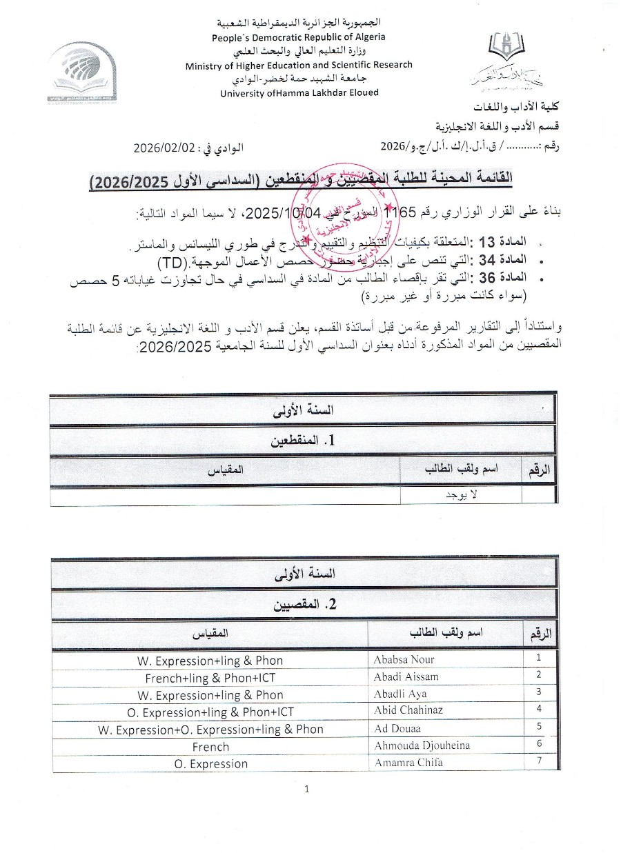 القائمة المحينة للطلبة المقصيين والمنقطعين الفصل الأول 25/26