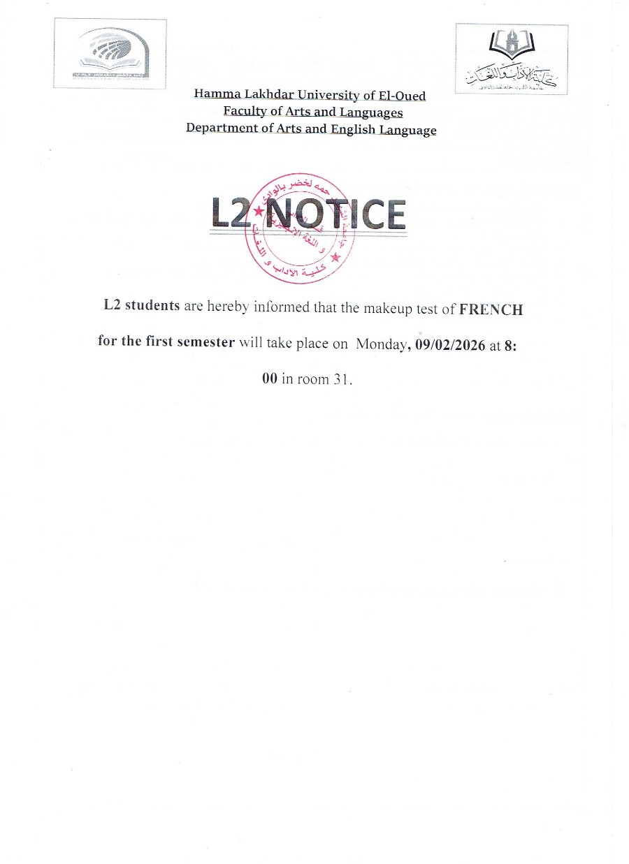 إعـلان هـام لطلبة كلية الآداب واللغات