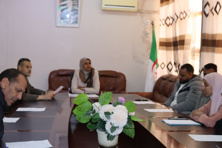 في إطار تعزيز قنوات التواصل والحوار داخل الأسرة الجامعية، اجتمع اليوم الاثنين 09 فيفري 2026 الهيكل الإداري والبيداغوجي لكلية الآداب واللغات، برئاسة السيدة عميد الكلية البروفيسورة دلال وشن، مع ممثلي المنظمة الوطنية للتضامن التطلابي – فرع كلية الآداب واللغات، وذلك قصد مناقشة ومعالجة جملة من الانشغالات والمشاكل التي طرحها أعضاء التنظيم.وقد حضر هذا اللقاء كل من: نائب العميد للبحث العلمي البروفيسور يوسف العايب نيابة عن السيد نائب العميد للدراسات، والسيد الأمين العام بالكلية الدكتور عبد المالك خلايفة، والسادة رؤساء الأقسام، والسيد مسؤول الأمن بالكلية وأعضاء التنظيم الطلابي.وقد جرى هذا اللقاء في جو يسوده الحوار المسؤول والشفافية، حيث استمعت السيدة العميد وأعضاء الهيكل الإداري والبيداغوجي إلى مختلف تدخلات ممثلي الطلبة، الذين عرضوا جملة من القضايا المرتبطة بالجانب البيداغوجي والتنظيمي، مع تقديم اقتراحات من شأنها تحسين ظروف الدراسة داخل الكلية.من جهتها، أكدت السيدة عميد الكلية حرص الإدارة على مرافقة الطلبة والاستجابة لانشغالاتهم في حدود القوانين والتنظيمات المعمول بها،