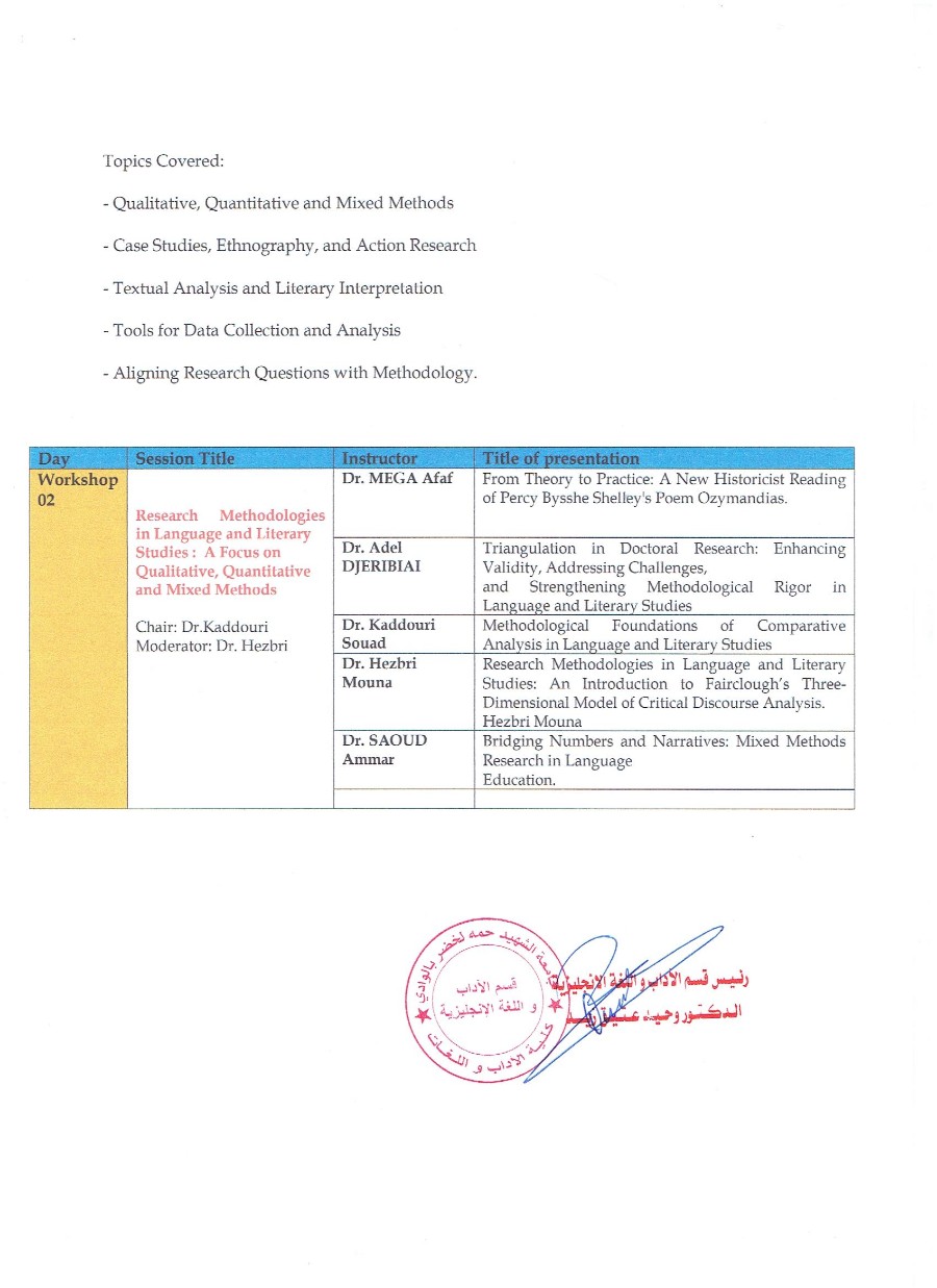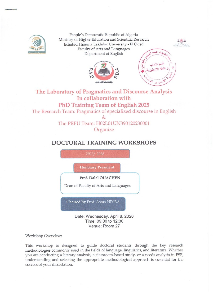 ورشة دكتورالية من تنظيم قسم الآداب واللغة الانجليزية