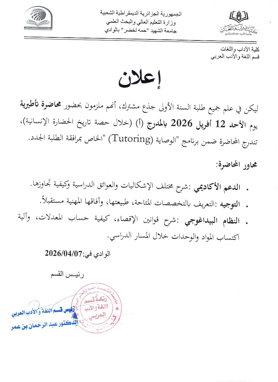 إعلان لطلبة سنة أولى ليسانس