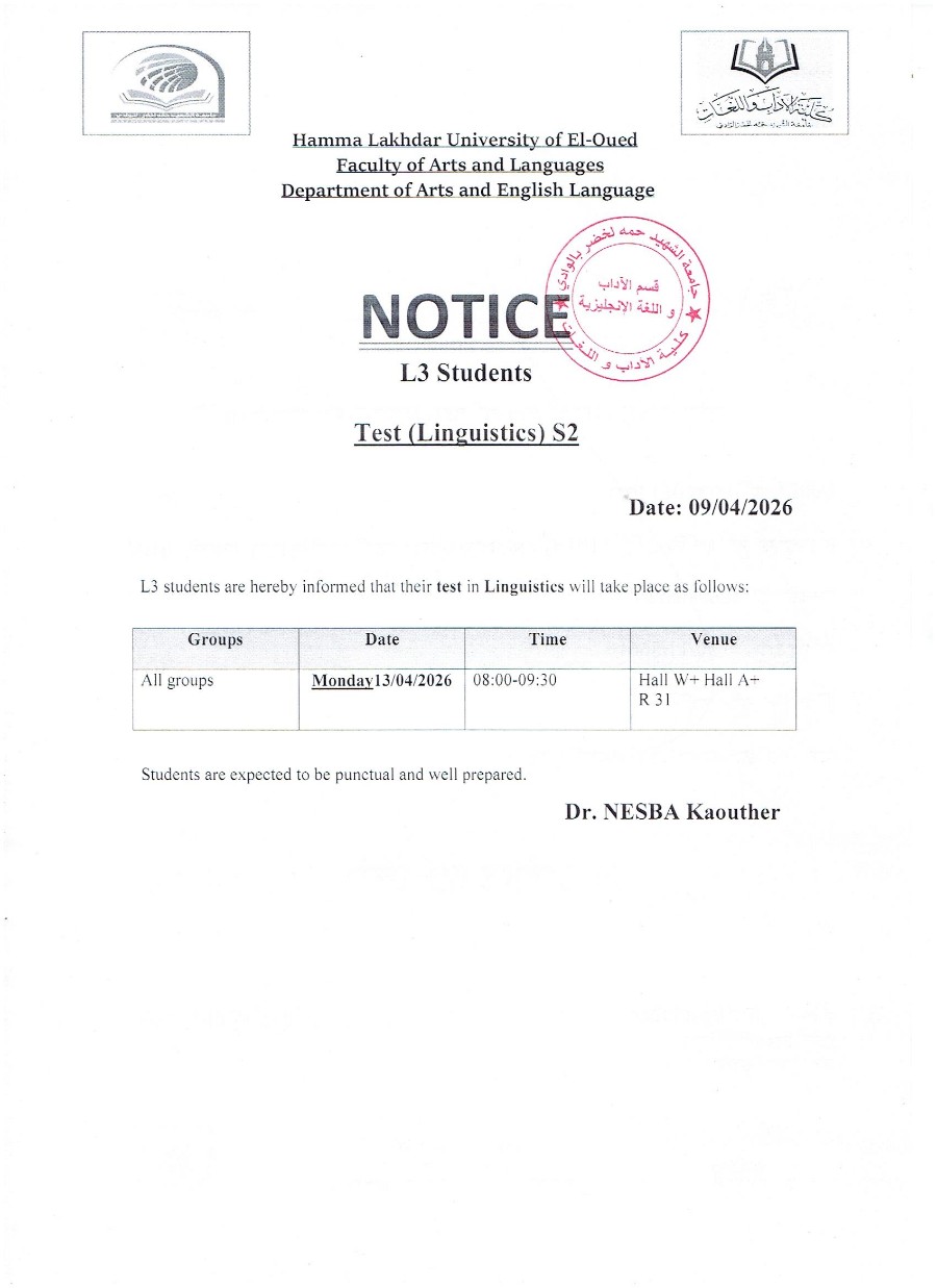 إعلان لطلبة سنة أولى ليسانس