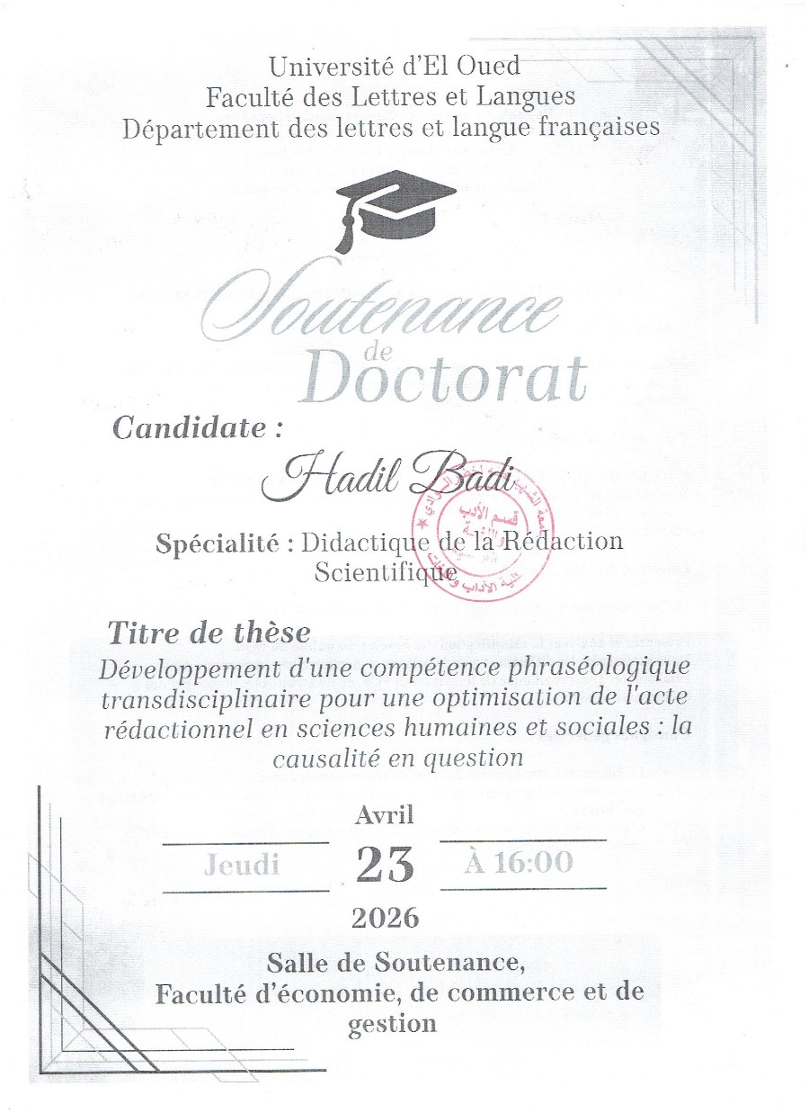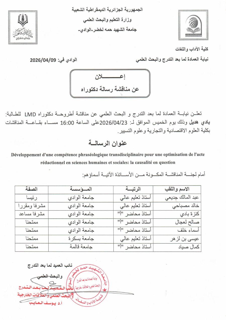 إعلان عن مناقشة دكتوراه
