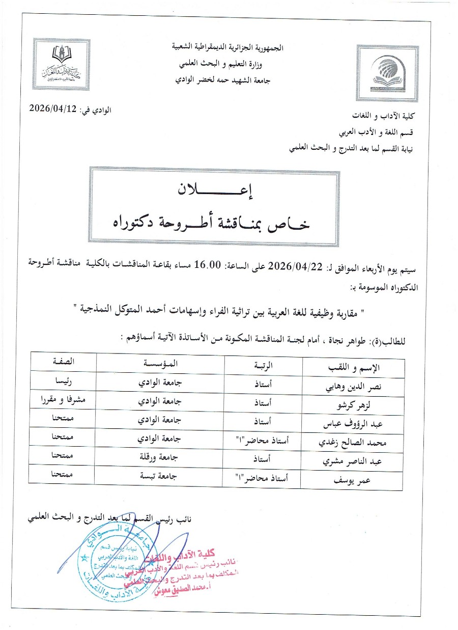 إعلان خاص مناقشة أطروحة دكتوراه