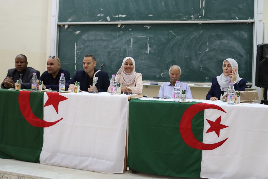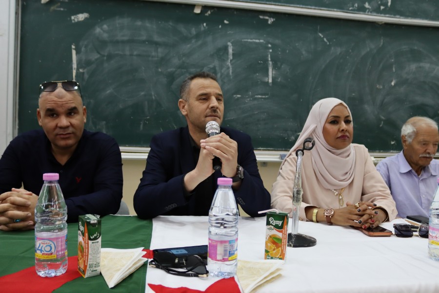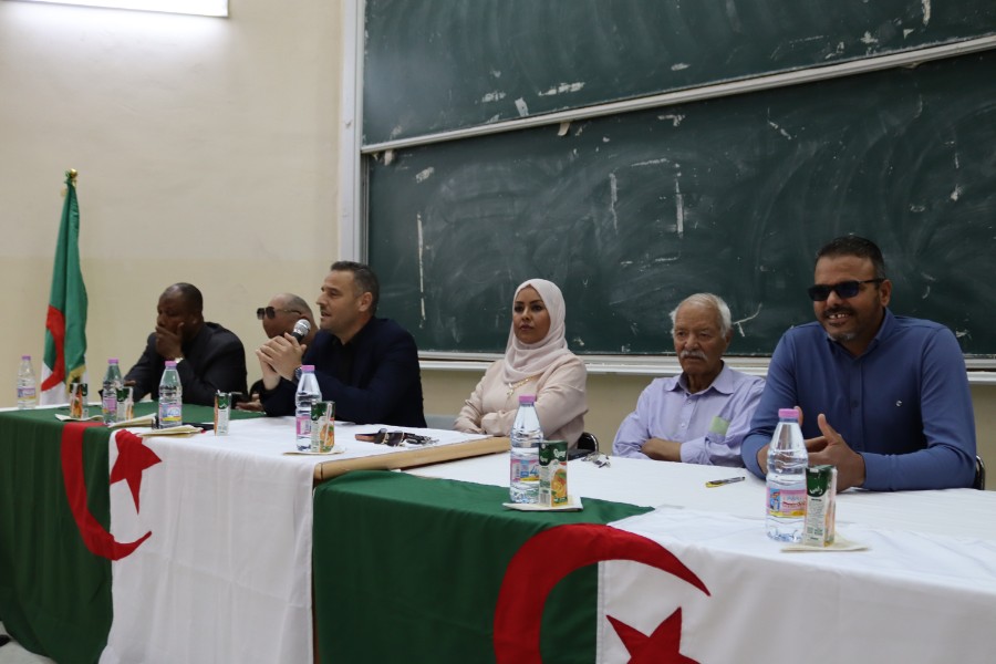 في إطار الاحتفال بعيد العلم 16 أفريل، نظم مخبر بحوث في الأدب الجزائري ونقده بالتنسيق مع قسم اللغة والأدب العربي ورشة دكتورالية متميزة بعنوان: "المتخيل السردي التاريخي الجزائري ودوره في حفظ الذاكرة الوطنية"، وذلك في إطار الجهود العلمية الرامية إلى تعزيز البحث الأكاديمي في مجال السرديات والذاكرة الثقافية.وقد افتتحت أشغال هذه الورشة السيدة عميد الكلية، البروفيسورة دلال وشن، بكلمة أكدت فيها على أهمية هذا النوع من اللقاءات العلمية في ترسيخ الوعي بالهوية الوطنية، وإبراز دور الأدب في توثيق الذاكرة الجماعية وصونها من الاندثار.وشهدت الورشة حضور عدد من الإطارات الأكاديمية، من بينهم نائب العميد للبحث العلمي البروفيسور يوسف العايب، ونائب العميد للدراسات البروفيسور عبد العزيز مصباحي، إلى جانب رئيس قسم اللغة العربية الدكتور عبد الرحمان بن عمر، ما يعكس الأهمية التي توليها الكلية للبحث العلمي والتكوين الدكتورالي.كما ألقى كل من رئيس المخبر، البروفيسور حمادة حمزة، ورئيس قسم اللغة العربية كلمة أبرزا فيها أهداف هذه الورشة، مشيرا إلى ضرورة الانفتاح على المقاربات الحديثة في دراسة المتخيل السردي، خاصة في علاقته بالتاريخ والذاكرة الوطنية.وقد ترأست فعاليات الورشة البروفيسورة نوال بومعزة، التي سهرت على تنظيم وانجاح هذه الورشة وأدارت الجلسات العلمية باحترافية عالية، مفسحة المجال أمام مداخلات ثرية والتي قدمت أحداها بعنوان تسريد التاريخ الوطني في رواية من أجلهما عشت للكاتب أحمد منور، وكل من البروفيسور السعيد قرفي، والبروفيسورة فاطمة الزهراء حفري، والدكتورة راجية غانية، حيث تناولت هذه المداخلات قضايا متنوعة تتعلق بتمثلات التاريخ في السرد الجزائري، وآليات اشتغال المتخيل في إعادة بناء الذاكرة الوطنية.وعرفت الورشة حضور ضيف الشرف الأستاذ بشير خلف، الذي أضفى على اللقاء بعدا ثقافيا وأدبيا مميزا، نظرا لإسهاماته في الأدب الجزائري. كما تكريمه على هامش هذه الورشة.واختتمت الورشة بجملة من التوصيات التي أكدت على ضرورة مواصلة البحث في هذا الحقل المعرفي، وتشجيع طلبة الدكتوراه على الانخراط في دراسات تعنى بالمتخيل السردي وعلاقته بالهوية والذاكرة، بما يسهم في إثراء الساحة الأكاديمية الجزائرية وتعزيز حضورها العلمي.