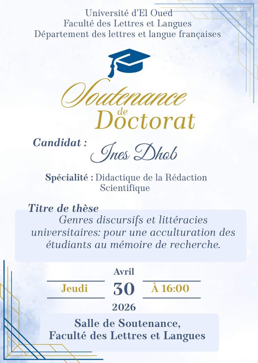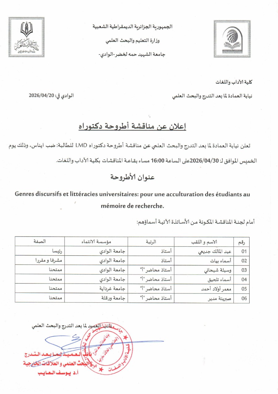 إعلان خاص بمناقشة أطروحة دكتوراه