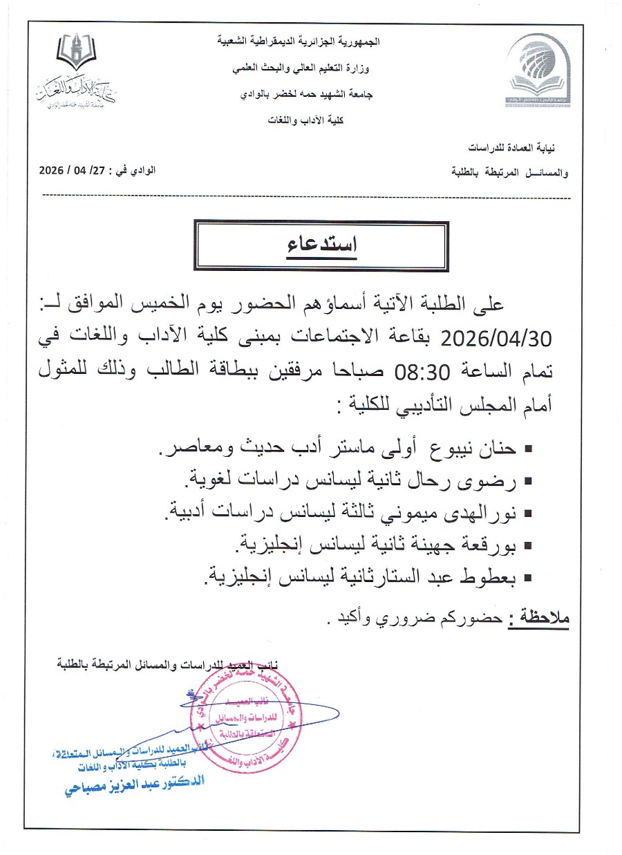 استدعاء للطلبة بخصوص المجلس التأديبي