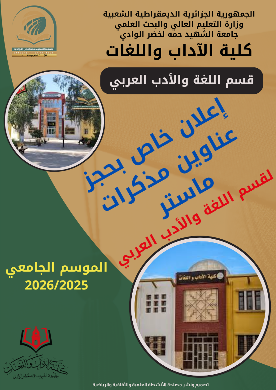 جامعة الشهيد حمة لخضر - الوادي Echahid Hamma Lakhdar University - El Oued Université Echahid Hamma Lakhdar - El Oued