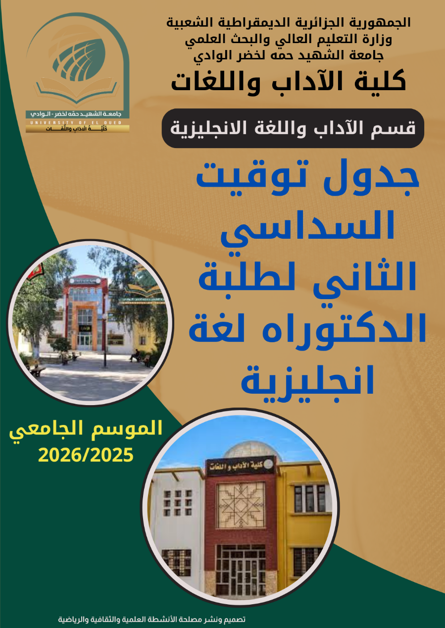 جدول توقيت السداسي الثاني لطلبة الدكتوراه لغة انجليزية