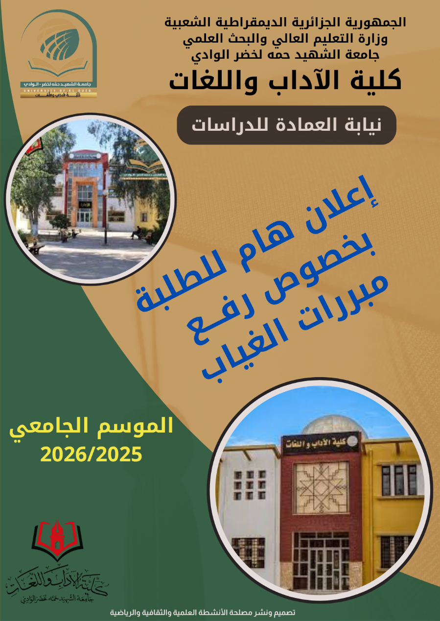 إعلان هام للطلبة بخصوص رفـــع مبررات الغياب