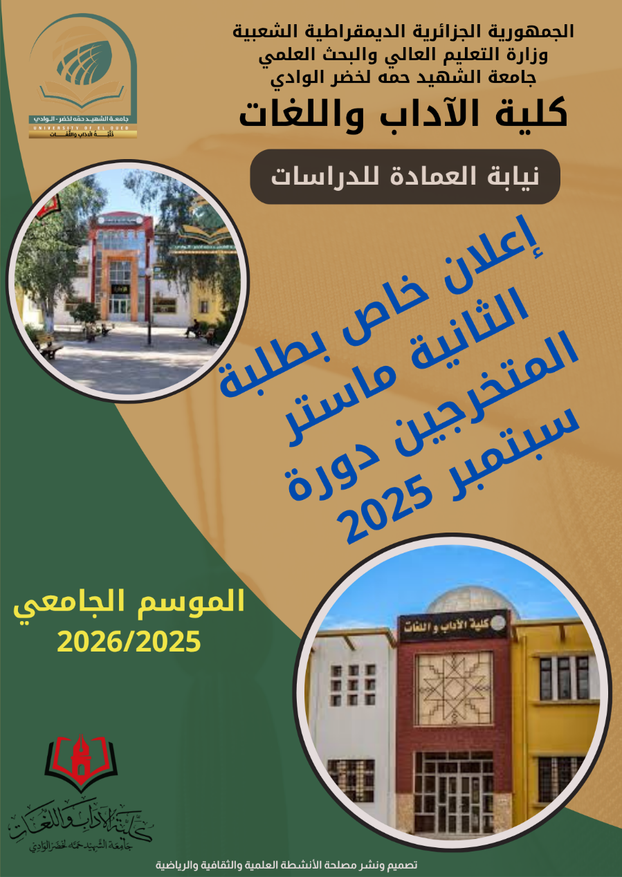 إعلان خاص بطلبة الثانية ماستر المتخرجين دورة سبتمبر 2025