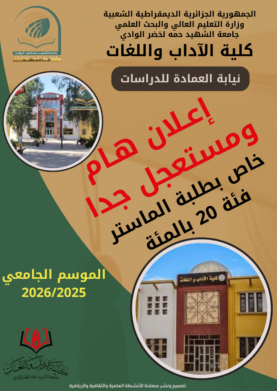 إعـلان هـام ومستعجل جدا خاص بطلبة الماستر فئة 20 بالمئة