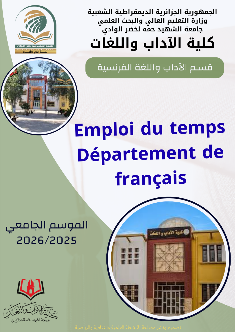 بمناسبه احتفالات الذكرى الستينية لعيد الاستقلال والشباب تعلن جامعة الشهيد حمه لخضر -الوادي- عن إطلاق الموقع الالكتروني الجديد للجامعة وذالك يوم الإثنين 04 جويلية 2022 خلال احتفالية بالمناسبة على الساعة 10.00 بقاعة المحاضرات الكبرى ابو القاسم سعد الله.