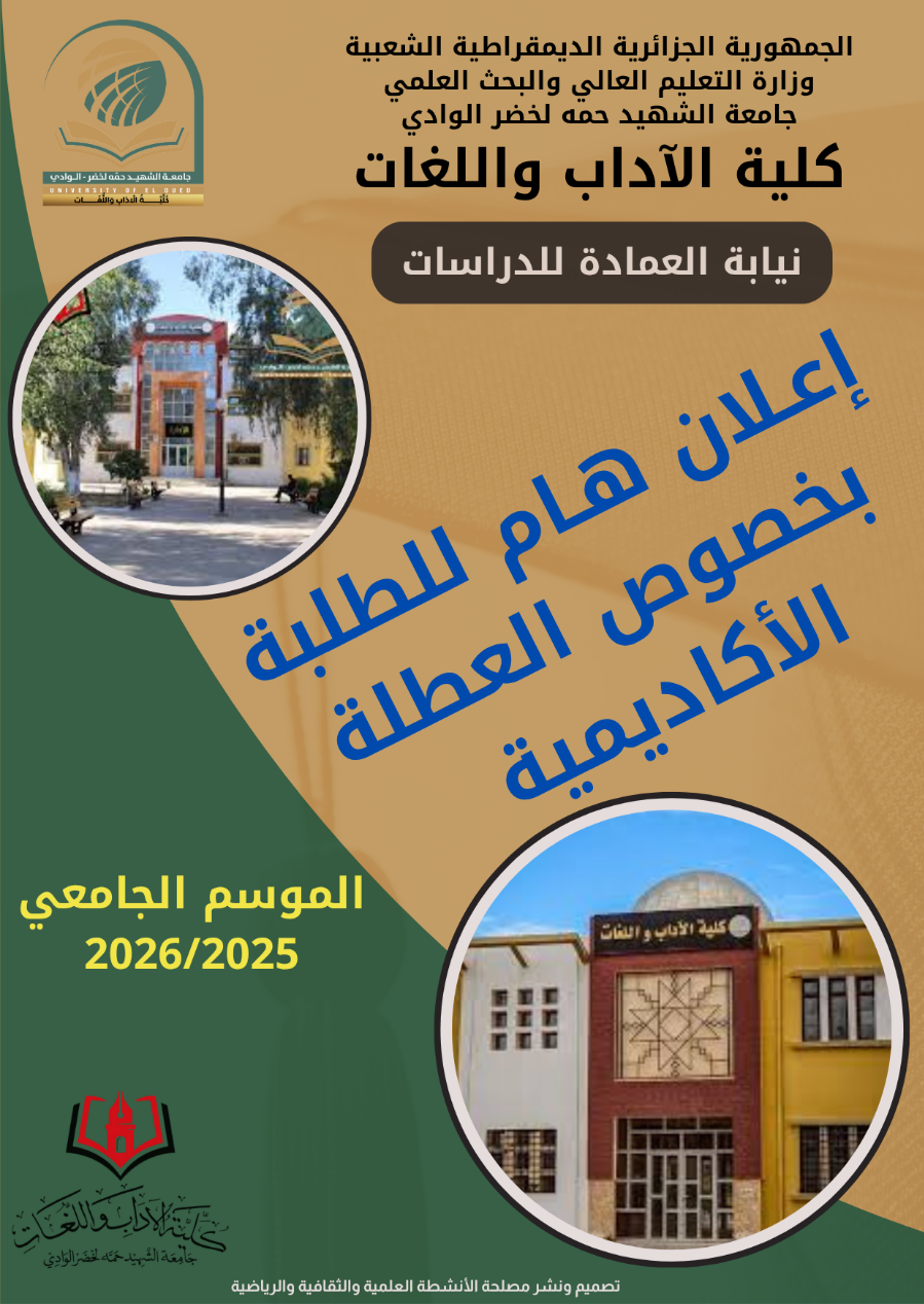 إعـلان هـام للطلبة بخصوص العطلة الأكاديمية
