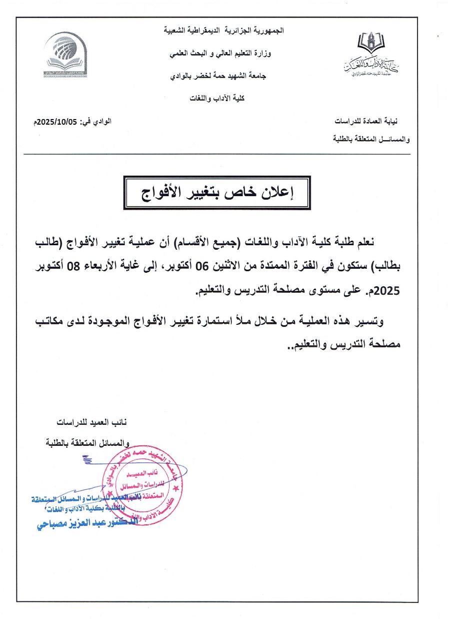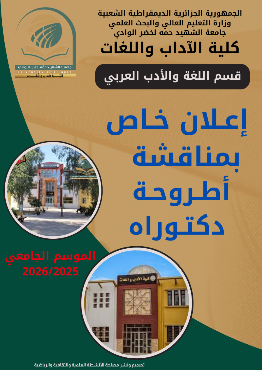 إعـلان خـاص بمناقشة أطـروحـة دكتـوراه