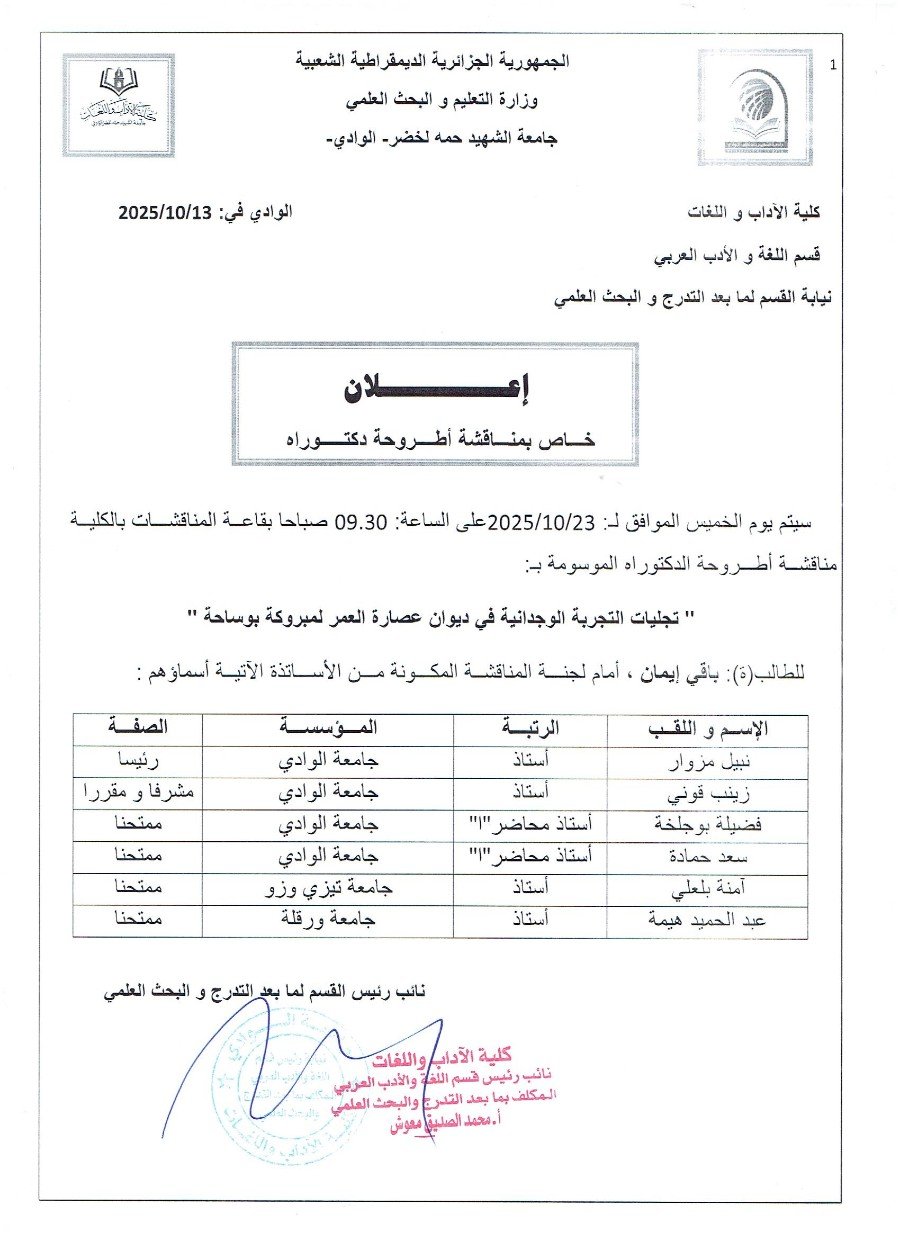 الجدول الزمني للسنة ثانية ماستر فرنسية