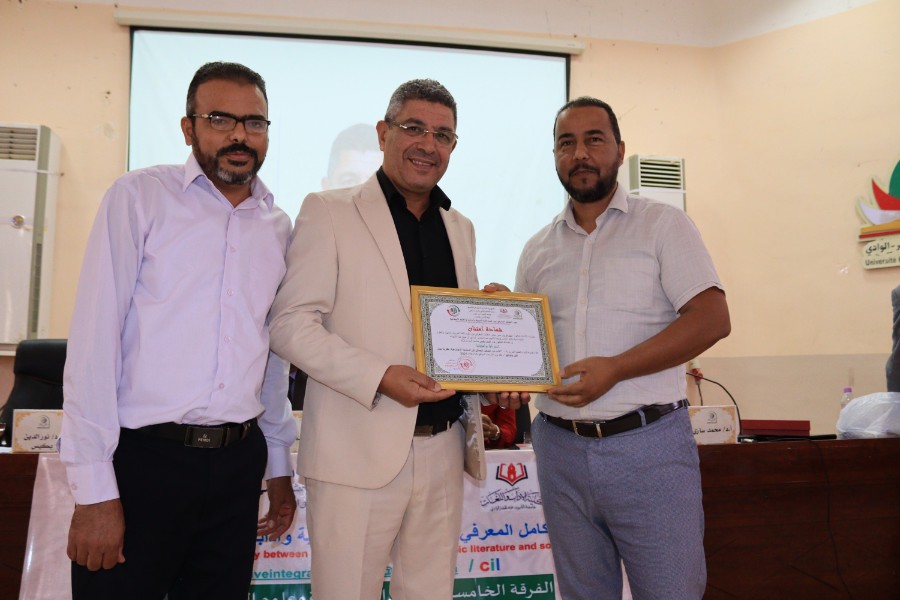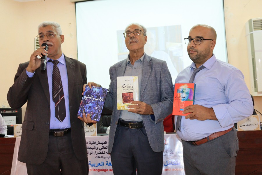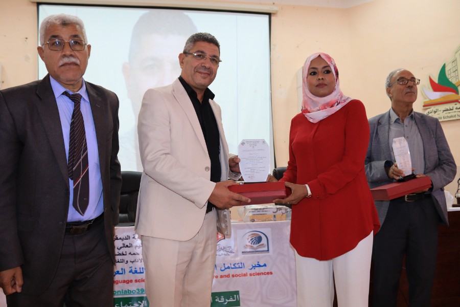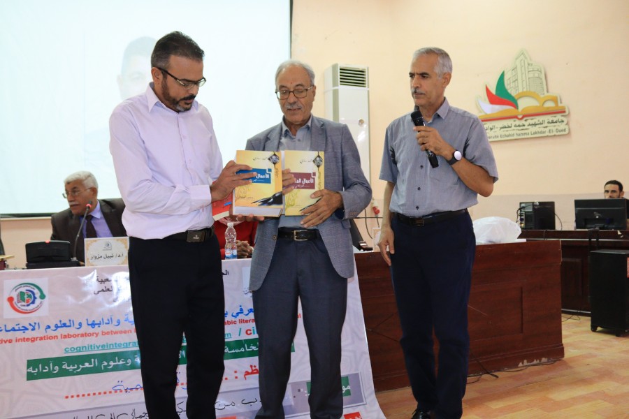 نظمت الفرقة الخامسة "العلوم الاجتماعية والمعارف اللغة و آدابها " بمخبر التكامل المعرفي بكلية الآداب جامعة الوادي بالتنسيق مع قسم اللغة والأدب العربي صباح الأربعاء الموافق لـ: 15/ 10/ 2025 بقاعة المحاضرات الصغرى العيد بيسي ندوة علمية موسومة بـ: "الادب من التشكيل الفني الى المعالجة الاجتماعية"وأشرفت السيدة عميد كلية الآداب واللغات البروفيسورة دلال وشن على افتتاح هذه الندوة، وفي كلمة لها شكرت من خلالها الضيفين الكريمين، ومدير مخبر التكامل وكل القائمين على تنظيم هذه الندوة.اشرف على ادرة الندوة باقتدار ا.د سليم سعداني، وتفضل بتقديمها ا د. نور الدين بكيس جامعة الجزائر 03، والناقد والمترجم والروائي محمد ساري وبحضور السيد رئيس قسم اللغة والأدب العربي د.عبد الرحمان بن عمر وجمع من الاساتذة والطلبة تضمنت الندوة أربع محاور رئيسة وختمت بمناقشة موسعة شارك فيها الأساتذة منهم ا.د رشيد بديدة وا.د رشيد هميسي ود. فوزية تقار، د. كلتوم زنينة، د. عوادي، د. ميداني بن عمر، د. خليفة قعيد وعدد من الطلبة، وفي ختام الندوة شكر مدير المخبر أ. د نبيل مزوار المحاضرين الكريمين كفاء ما قدموه وما لاقوه في سبيل اعداد هذه الندوة.