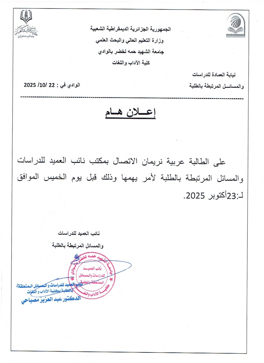 استدعاء للطالبة - عـربية نريمـان