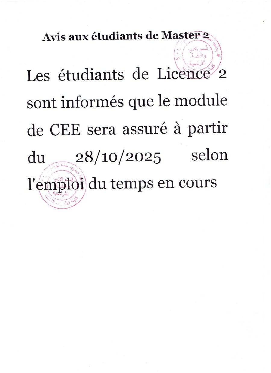 إعلان خاص بطلبة الثانية ماستر المتخرجين دورة سبتمبر 2025