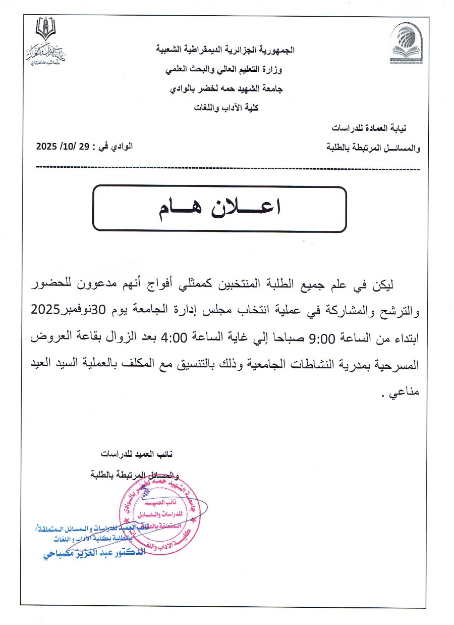 إعلان عن يوم دكتورالي لقسم اللغة الفرنسية