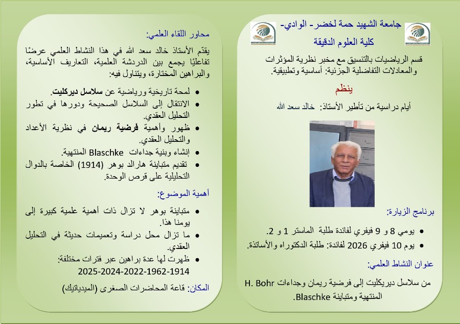 إعلان عن برمجة أيام دراسية من تأطير الإستاذ خالد سعد الله