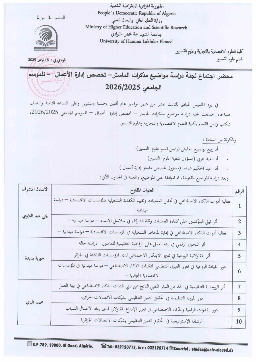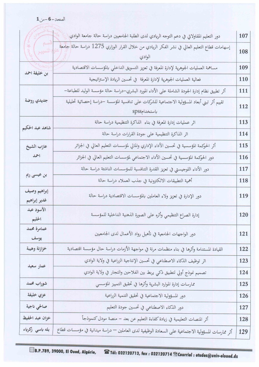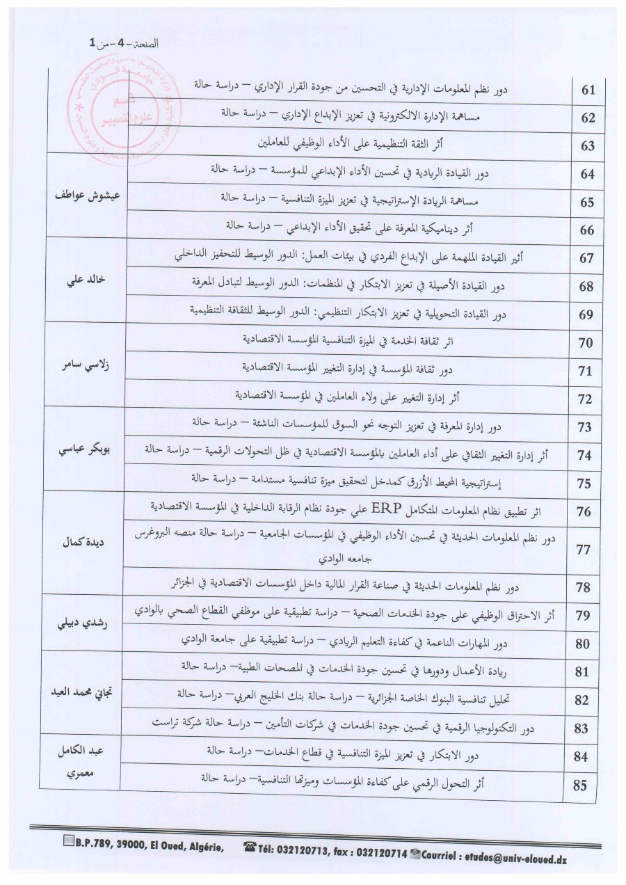 مواضيع المقترحة لسنة ثانية ماستر إدارة الاعمال