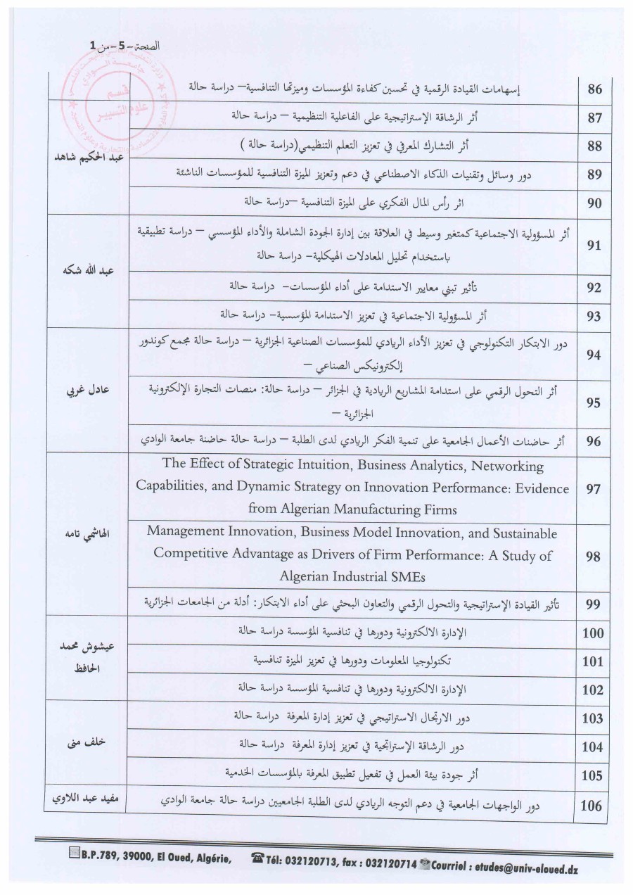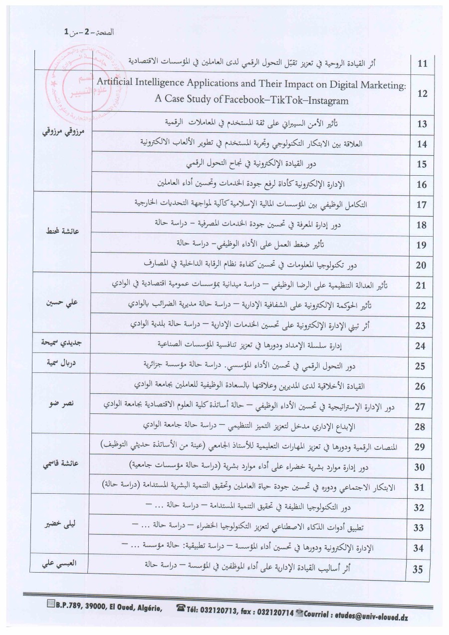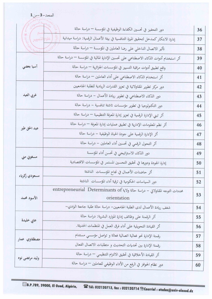 مواضيع المقترحة لسنة ثانية ماستر إدارة الاعمال