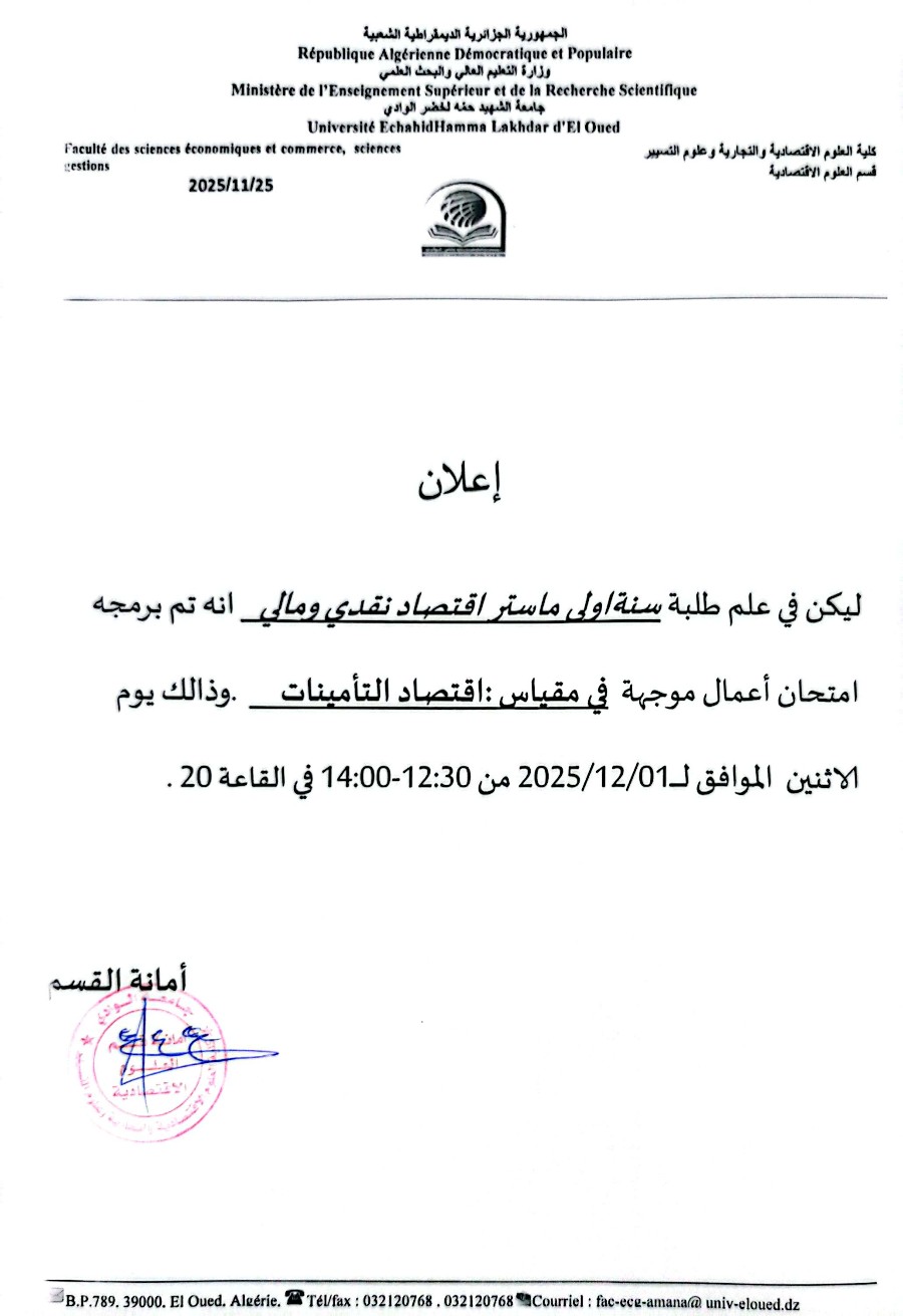 برمجة امتحان اعمال موجهة لقسم علوم اقتصادية